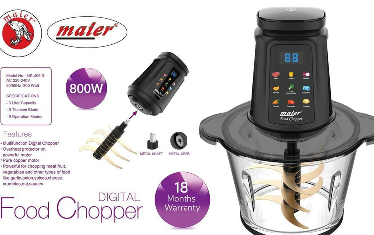 اگر به دنبال خردکن حرفهای با کیفیت آلمانی هستید، مدل MR-495 از برند مایر یک انتخاب عالی است. این محصول با قدرت بالا، تیغههای مقاوم تیتانیومی و کاربری آسان، فرآیند آمادهسازی غذا را سریعتر و دقیقتر میکند. همچنین ظرفیت بالای کاسه باعث میشود در یکبار استفاده مقدار زیادی مواد غذایی را آماده کنید، بدون نیاز به چند مرحله کاری.